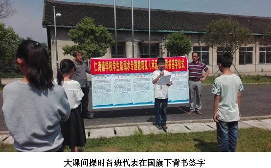 近日,该校除了按教育局开展防溺水“六个一”动做外(挂一张图、唱一首歌、发一封信、看一次专题片、上一次课、写一篇不雅后感),特添加一个“狠”动做:要求每个学生对《仁湾镇学校学生防溺水“六不”许诺书》到班从任处背字。勾当过程是:正在大课间操上,全校举行背字典礼,各班代表正在国旗下背字;正在读报课上,学生先集体背书,再人人到班从任处过关背书,最初个个正在《许诺书》上用记号笔签上本人的名字。这一勾当给学生思惟上很大的震憾,极大的提高了学生防溺水平安认识。(蒋剑中)。