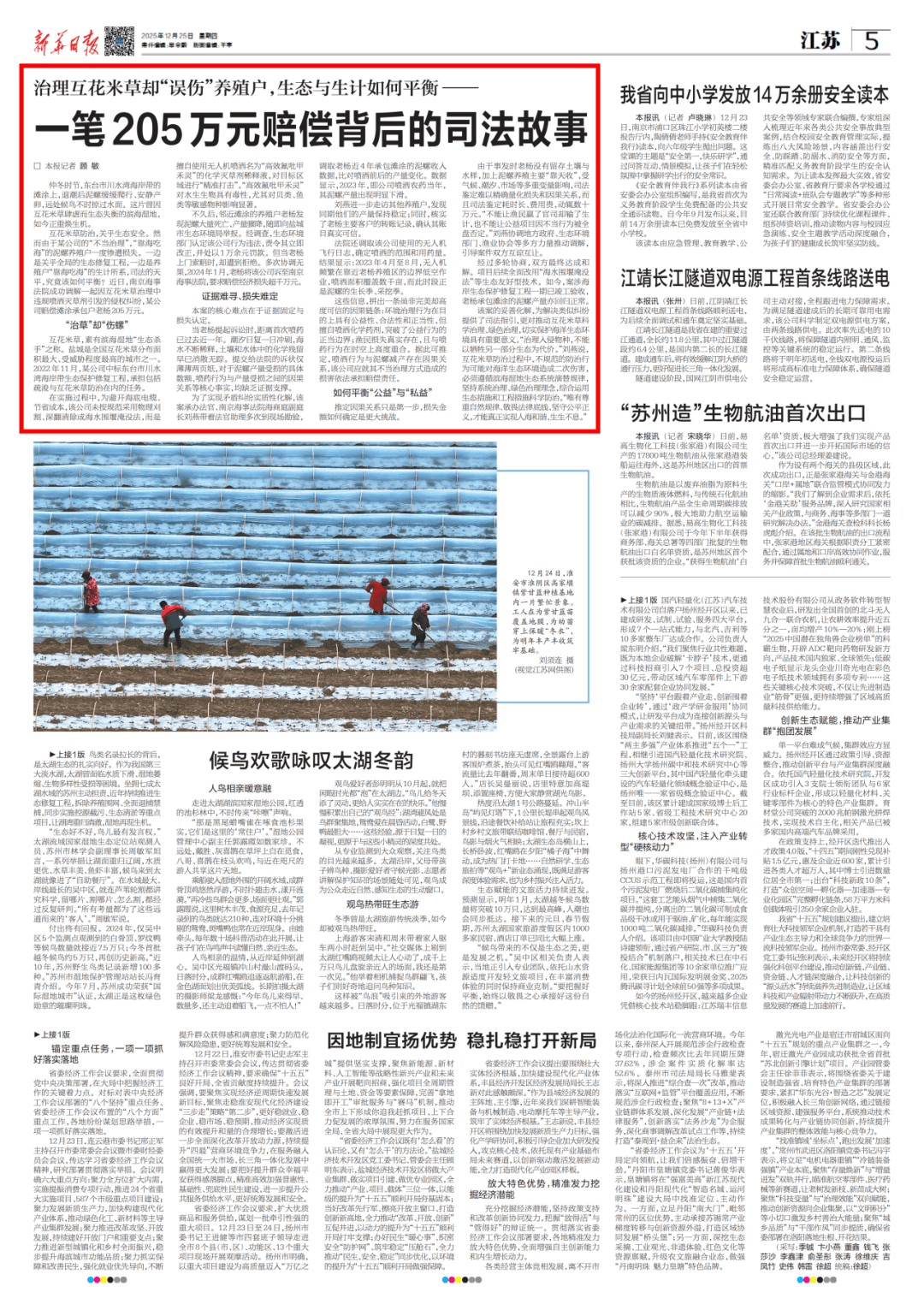 仲冬时节,东台市川水湾海岸带的滩涂上,退潮后泥螺慢慢爬行、远处候鸟不时擦过水面。这片曾因互花米草而生态失衡的滨海湿地,现在正沉焕朝气。(12月25日,新华日报5版)
